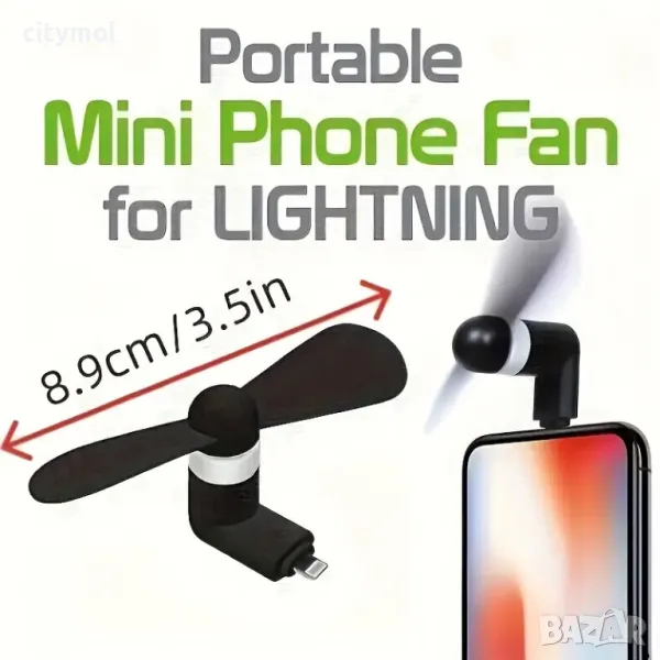 USB Type-C и Lightning вентилатор за смартфон, Power Bank и др.