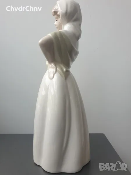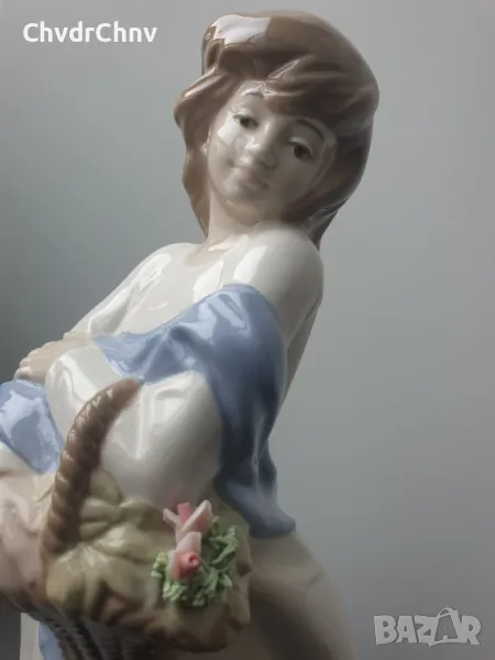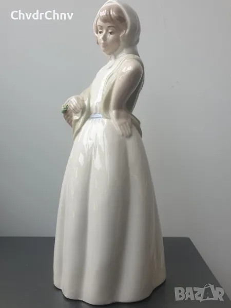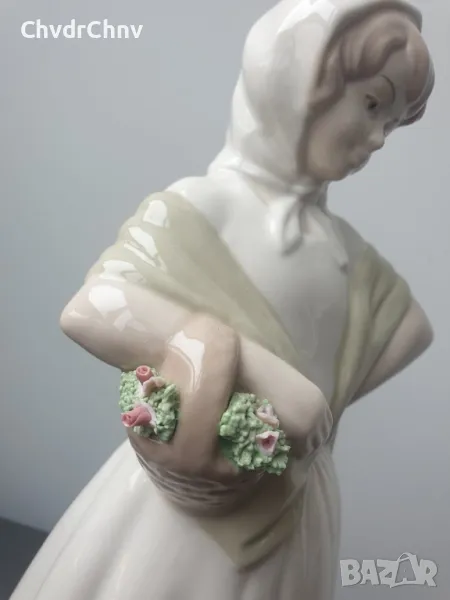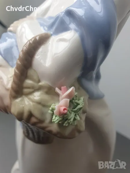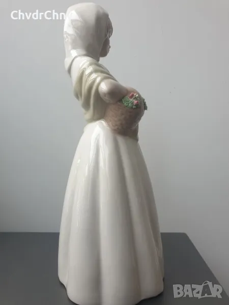 Височина 29 см, плътна/тежка, ръчно оцветявана, голяма и много рядка за България колекционерска фигура на МИРМАСУ, производство 1970-те, в перфектно състояние (здрави цветчета!).