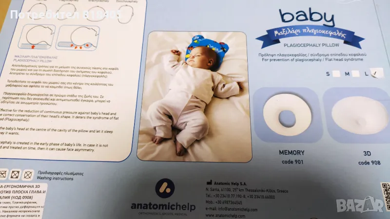 Иновативната ергономична-ортопедична 3D дишаща бебешка възглавница от AnatomicHelp еминимизира натиска върху задната част на главата на бебето, докато лежи. Главата на бебето се нуждае от подкрепа и защита, за да не се деформира. Това дишащо 3D гнездо-възглавница е най-ефективния начин да се намали непрекъснатото налягане върху главата на бебето и да се поддържа правилно формата на главата. Предотвратява и лекува синдрома на плоската глава както каските.