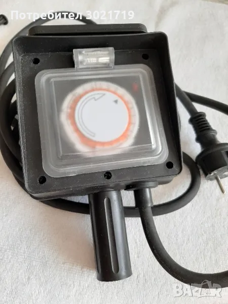 Продавам разклонител много подходящ за двор4а/градината/ със ръчен таймер, 3 метра дебел гумирани кабел за товар до 3 Kw