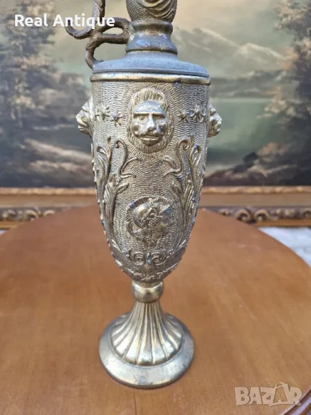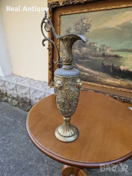 Продавам красива антикварна белгийска метална кана в много добро състояние с чудесна орнаментика. Материал сплав. Височина 40 см ширина 15 см. Прекрасно допълнение към интериора на Вашия дом офис вила. Подходяща и за подарък. Работя с всички куриери. Отговарям бързо.