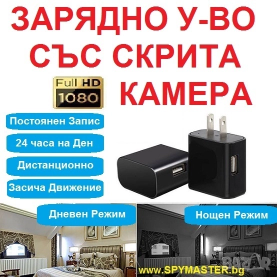 Това е най-нов модел реално зарядно устройство със скрито вградена Wi-Fi IP камера с HD резолюция 1920x1080 за кристална картина и 90° ъгъл за детайлно гледане.