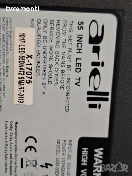 PSU PW.188W2.711 LSC550FN13 for ArielliLED-55DN4T2 for 55 inc DISPLAY HV550QUB-H11 борда е гарантирано работещ Демонтиран от телевизор Arielli модел LED-55DN4T2 със счупен дисплей HV550QUB-H11 тествана от нашия техник Ремонт на всички марки съвременни телевизори