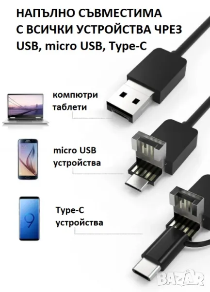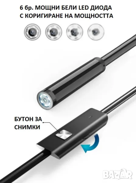 Ендоскоп, бороскоп с твърд/мек кабел USB, micro USB, Type-C- 1.5м/2.0м