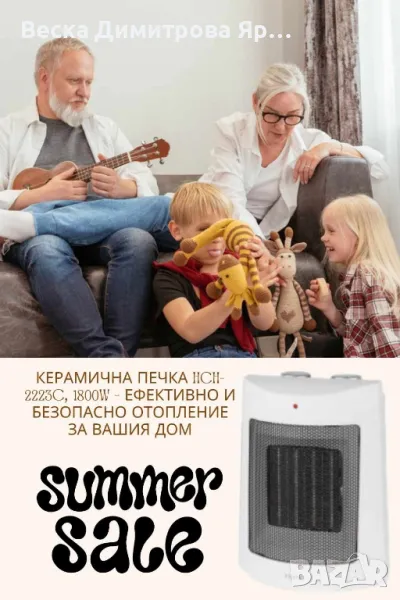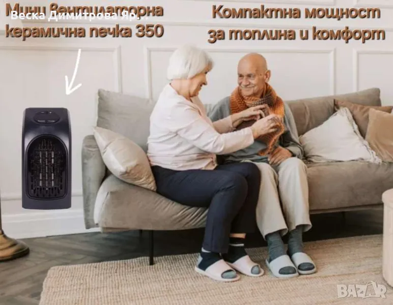 Мини вентилаторна керамична печка 350 – Компактна мощност за топлина и комфорт. Цена 35 лв.