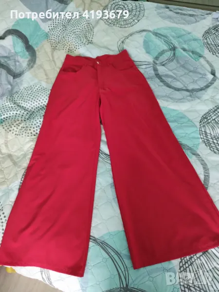 Червен чарлстон панталон - много финна и лека материя .Носен два пъти - като нов!Размер М.Талия едностранно 37 см.Ханш 59-60 см.