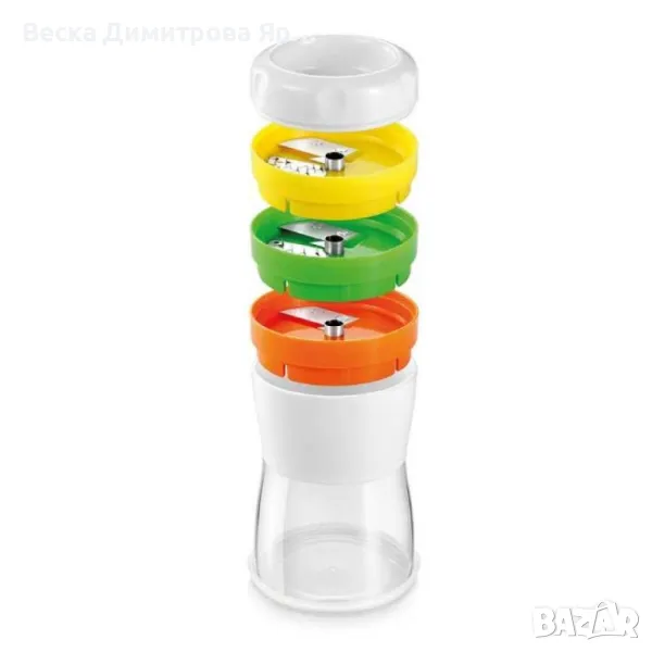 Уреда е създаден да предостави максимален комфорт и ефективност при рязането на различни съставки. С неговия интуитивен дизайн, висококачествени остриета и удобен контейнер, тя е идеален избор за всеки, който иска да добави иновации и стил в кухнята си, като същевременно се наслаждава на здравословни и вкусни ястия. Предназначен за спираловидно рязане на юфка, спагети и спирални чипсове от моркови, краставици, тиквички, бели репички, цвекло, картофи, ябълки и други Прозрачен контейнер, удобен за съхранение и лесен за използване за различни видове зеленчуци. С три остриета от висок клас неръждаема стомана и защитна дръжка за лесно рязане без остатъци. Размери: 08х17ст Подходяща за почистване в съдомиялна машина Гаранция: 3 години