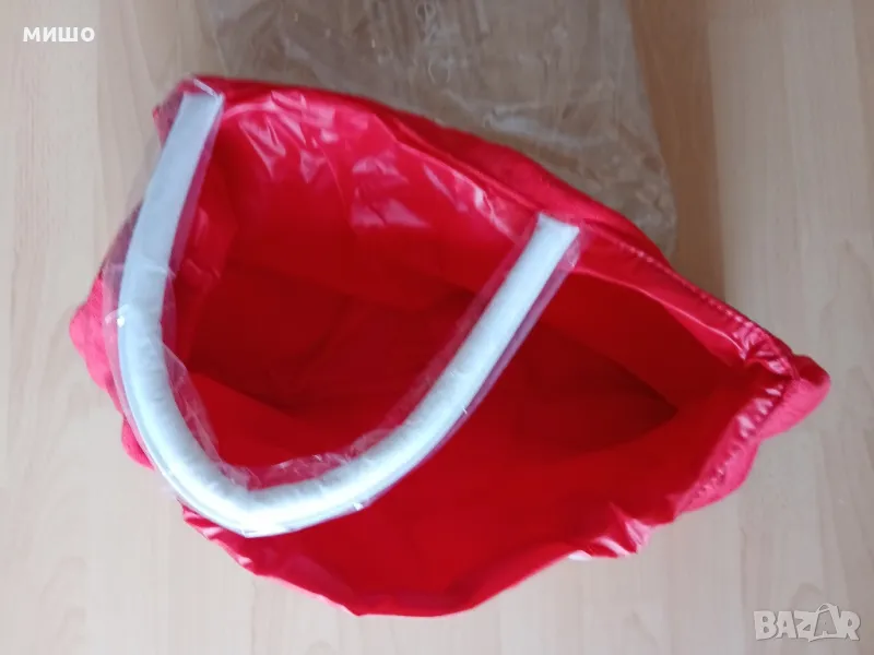Дамската чанта е с размери 42см /33 см. Материала е плюш отвън, пластмасова отвътре. Става и за плажна чанта.