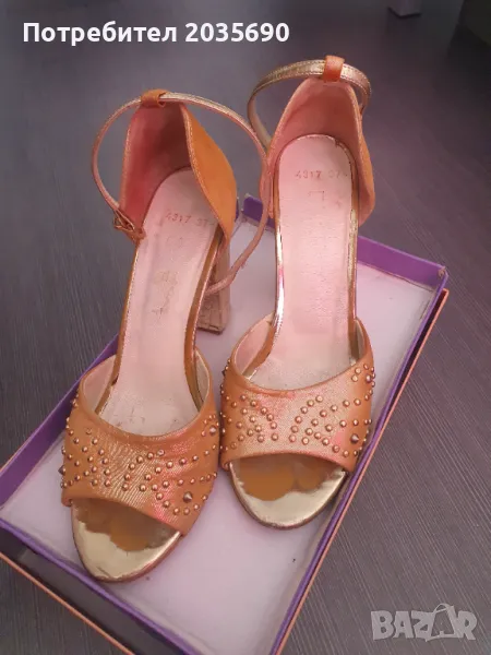 Дамски сандали на висок ток. 100% естествена кожа. Стабилен ток. Купувани за 120 лв. Не коментирам цената. Размер 37. Дължина на стелка 24 см.