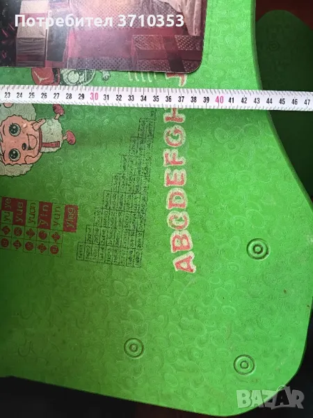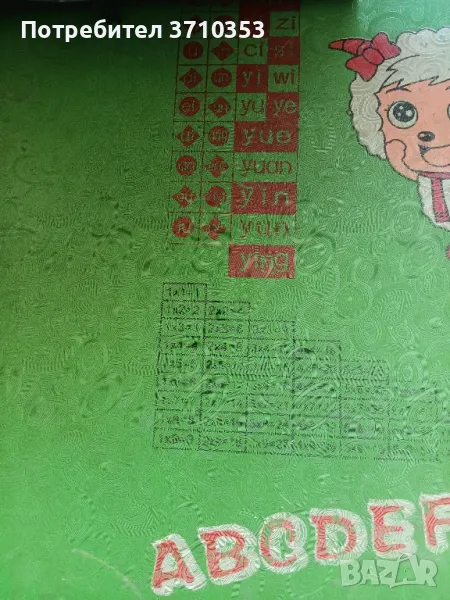 Има таблица за умножение, английска азбука с някои граматически правила.
