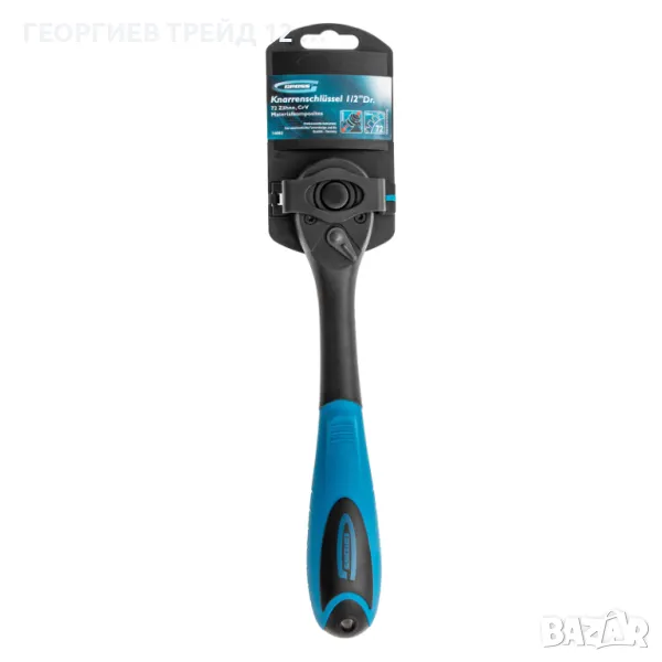 Тресчотка Gross Comfort 14082 от стомана CrV, с двукомпонентна дръжка, 1/2-инчов квадратен конектор и функция за бързо освобождаване, е оборудвана със 72-зъбен механизъм за бързо и гладко завиване / отвиване на резбови крепежи. Удобен е за работа в ограничено пространство, тъй като стъпката на тресчотката е само 5 градуса. Инструмента се използва в сервизни центрове, автомобилни майсторски работилници, ще бъде полезен при монтаж на оборудване, както и у дома, в гаража или на вилата.