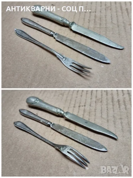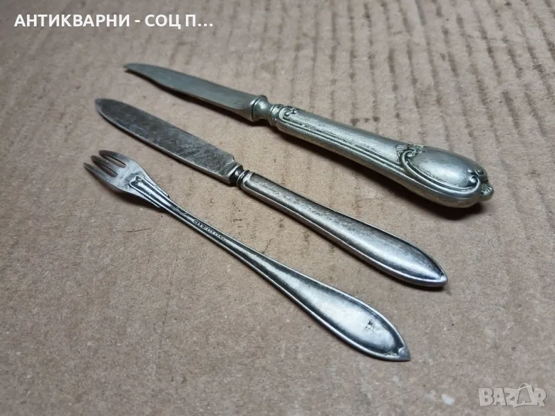 Здравейте - Продавам Комплект 2 Броя Стари Посребрени Малки Ножчета + 1 Брой Малка Посребрена Виличка!