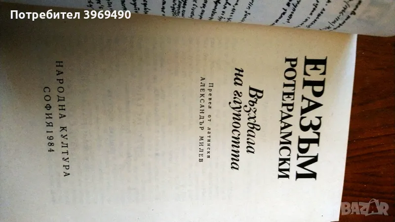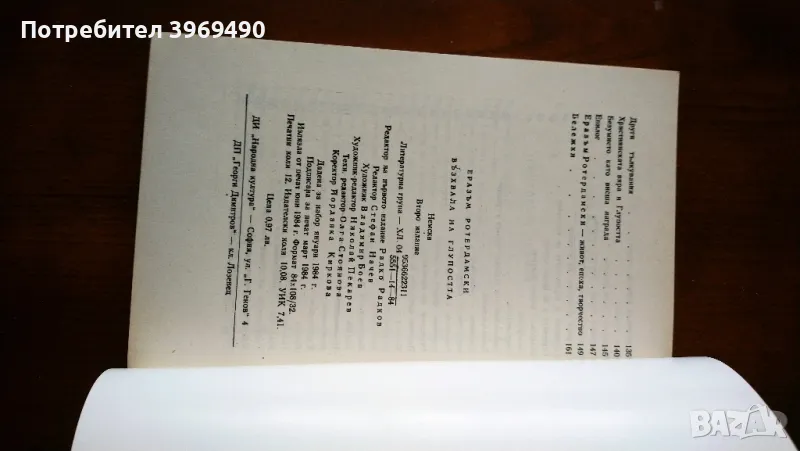 " Възхвала на глупостта ".Автор Еразъм Ротердамски.Издадена от Издателство " Народна култура " - София през 1984 г.Меки корици.