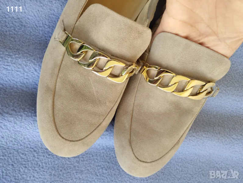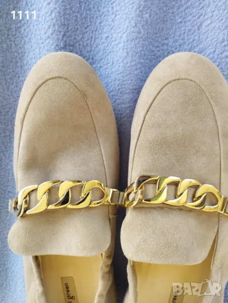 Обувките са обувани един или два пъти в отлично състояние са, според мен са с едва доловими следи от употреба.Светло бежов цвят са.Мека естествена кожа.Гъвкава подметка.Номер 41 с дължина на стелката 27 см.Марката е скъпа и качествена.Цена 68лв.