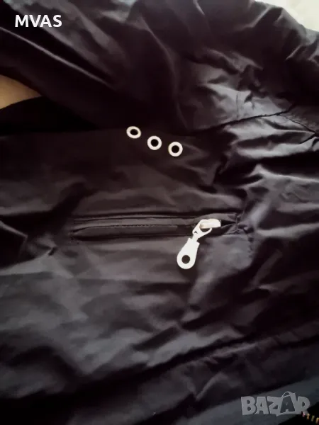 Дамски олекотен дъждобран, анорак. Втален е, хубаво стои, закопчава се с цип и с лепенка. Малко над коляното.