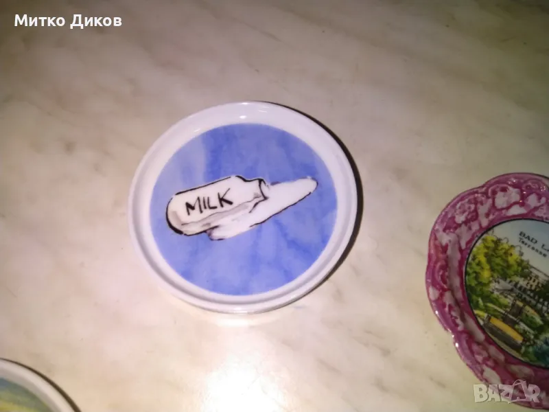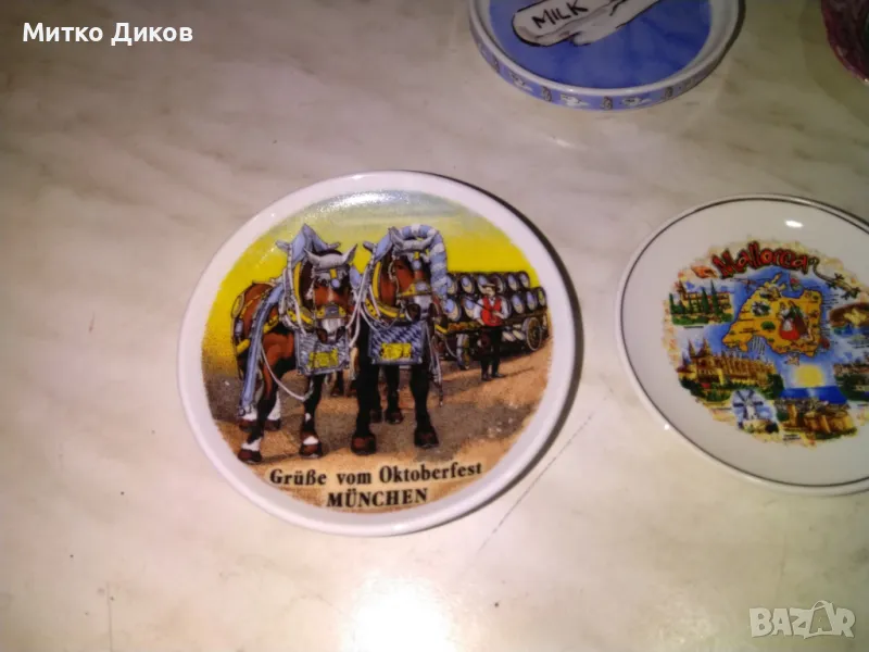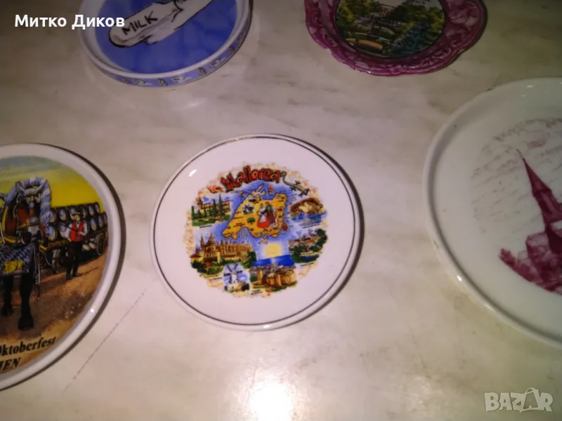 порцеланова чиния за стена маркова-5броя Майорка-фи-80мм-6лева-Мляко-фи-85мм-3лв-Мюнхен--фи 100мм-8лв -Кули Хесен Германия -фи 112мм-8лв-Бад Лаусик Герм.-фи 85мм--8лв
