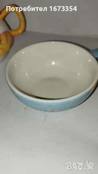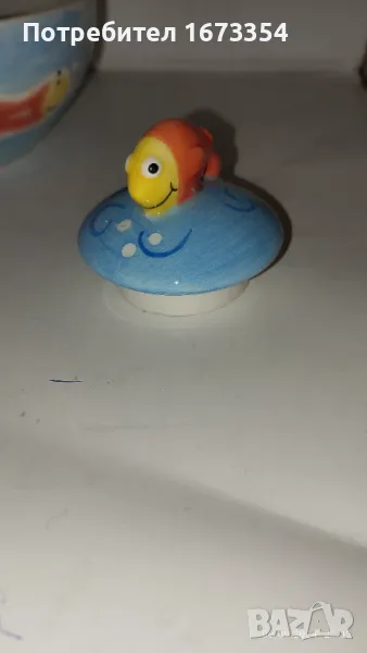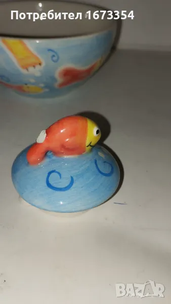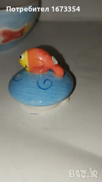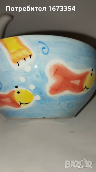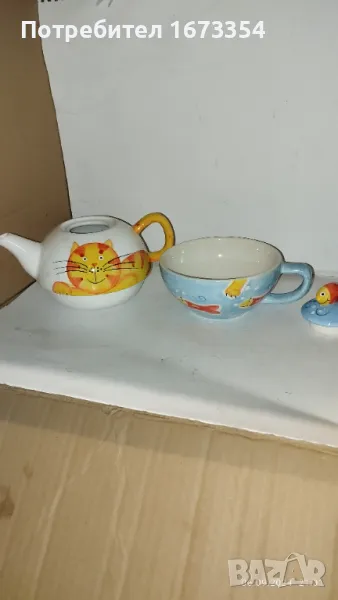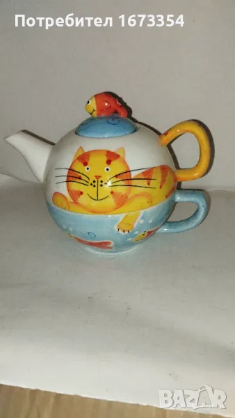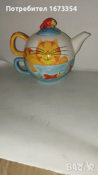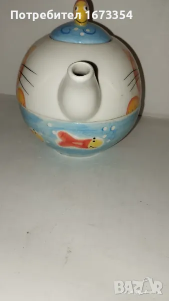 Продавам комплект чайник и чаша интересни и красиви за микровълнова печка събрани в едно с дефекти ( отчупване на опашката на рибата ( капачето) и напукване на емайла ( външния слой) според мен не е пречка но това е положението за това е такава и цената ,капачето може да се оправи или да се цапне с малко боя инъче рядка и красива интересна вещ може да се ползва и само за декорация