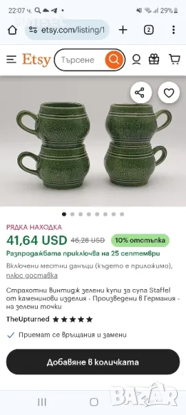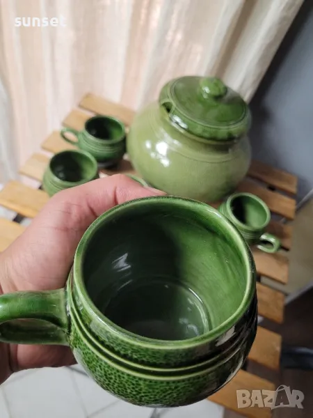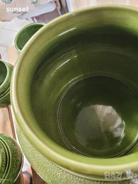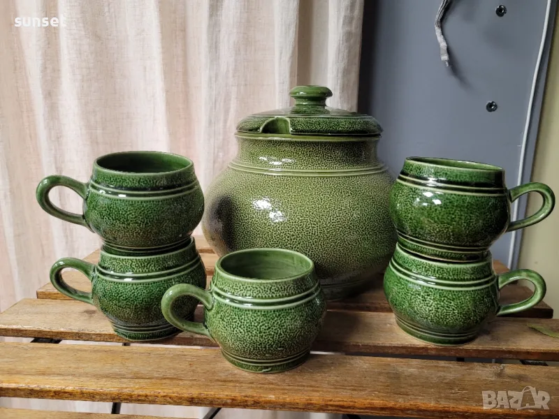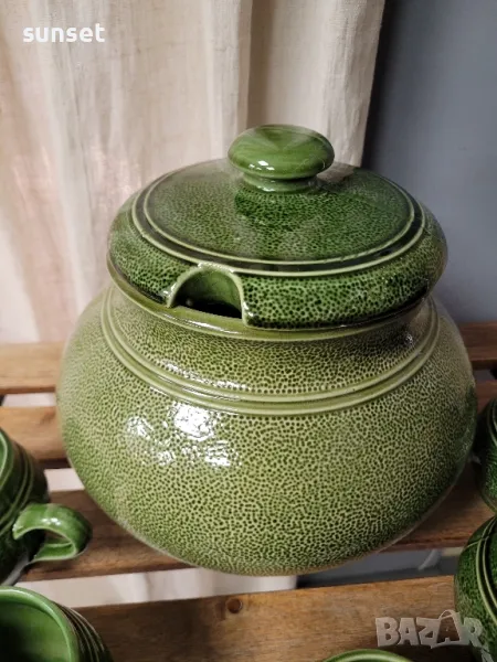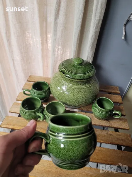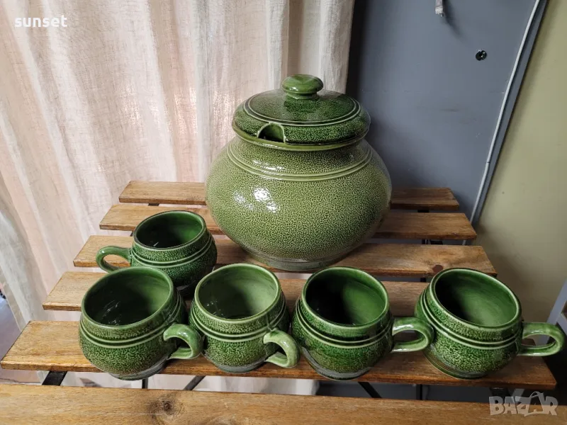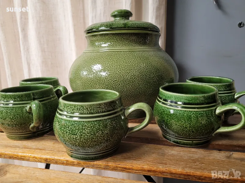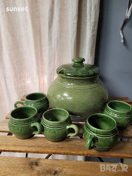 Staffel Stone Ware,ВИНТИДЖ зелен супник+ 5 бр.чашки за супа ( ГЕРМАНИЯ) → Обява 47154644