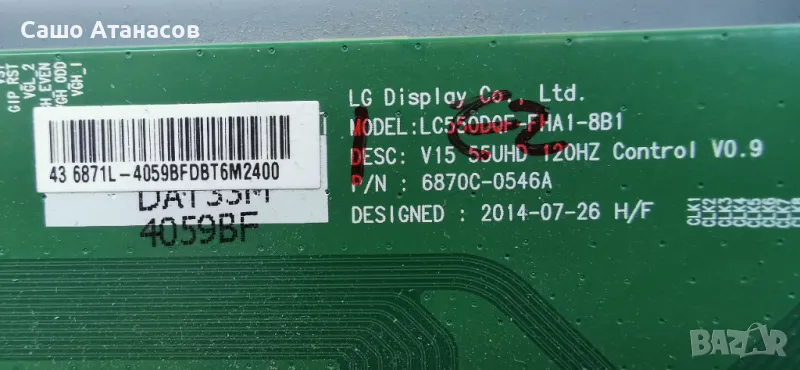 T-Con Board: LC550DQL-FHA1-8B1 / V15 55UHD 120HZ Control V0.9 ( 6870C-0546A / 6871L-4059BF ) - 70лв.