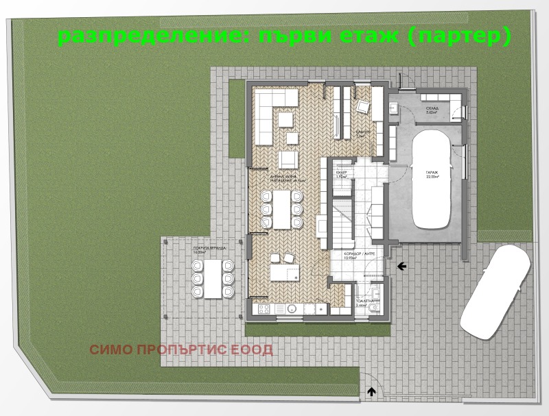 - гараж, които има топла връзка с къщата 22 кв.м.
