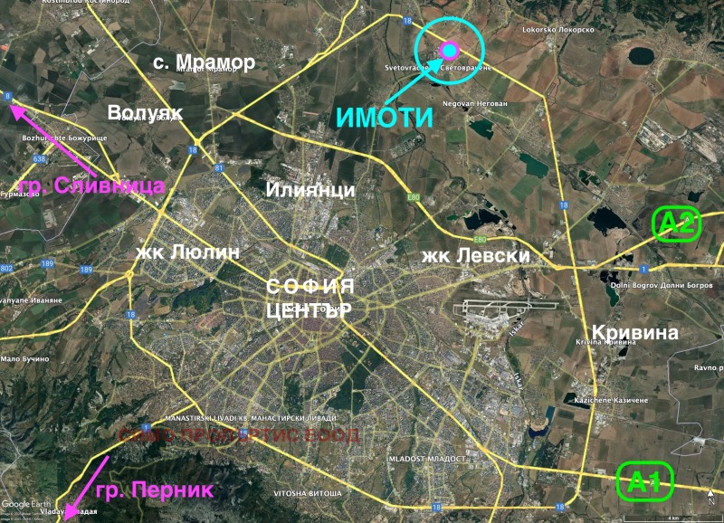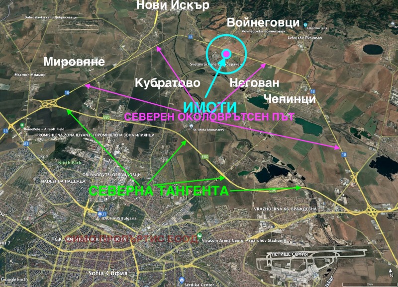 Продават се имоти в района на с. Световрачане на северния околовръстен път на София. Имотите са с квадратура от 1300 кв.м. до около 5000 кв.м.