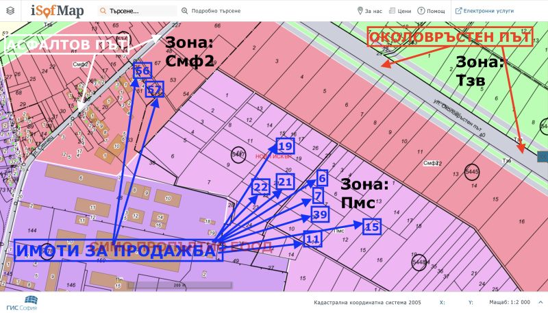 Зоните в които попадат имотиоте са Пмс и Смф2.
