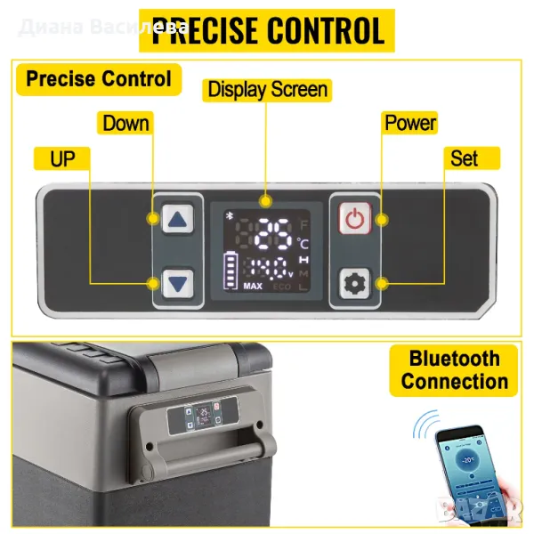 Продавам нов преносим хладилник с компресор, който ще ви позволи да запазите храната си както охладена, така и замразена докато пътувате на по-дълги маршрути. Този многофункционален хладилник се предлага в обем от 45 литра, което осигурява достатъчно място за съхранение не само на храна, но и на напитки. Подходящ за автомобил, камион, пикник, къмпинг, лодка или където ви потрябва. Работи на 12v 24v и 220v.Обем от 45 литра. Температурата се регулира от - 20 до +20градуса. Има възможност за управление през смартфона чрез блутут. Изключително тих. Ниска консумация има и режим еко.Три режима за защита на акумулатора от изтощаване. През приложението на мобилния си телефон можете да следите температурата и да я регулирате.