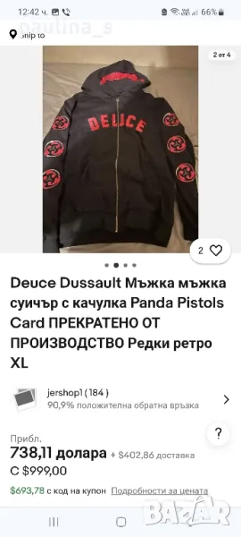 1️⃣. XL / 2XL - "Deuce by dussault". Цената е крайна 84,99лв / 42,5 евро. Много рядка винтидж находка, нова черна памучна блуза тип тениска с щампа. Материята е памучно трико и има еластичност, покрива няколко размера, посочени са. Една бройка е, без дефекти и етикет, като нова.