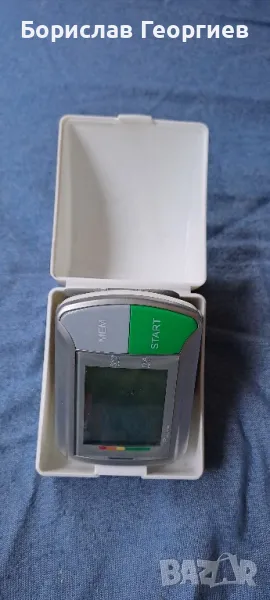 Апарат за измерване на кръвно налягане, марка Medisana. Монтира се на китката на ръката. Производство на Германия. Използван е рядко. Работи с две батерии тип ААА.