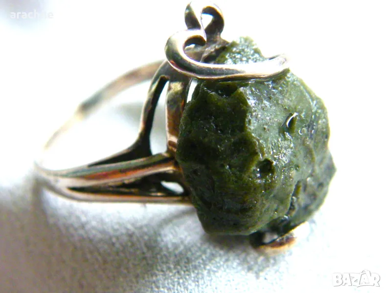 Сребърен пръстен с молдавит → Обява 47160567