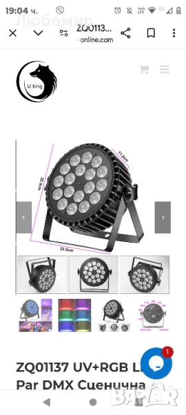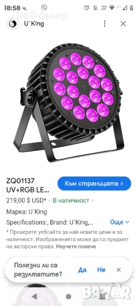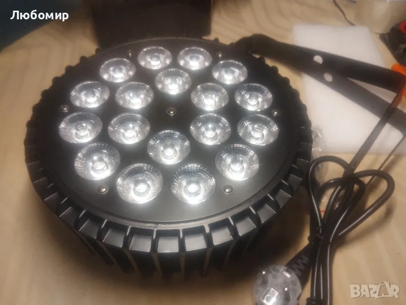Брой перли на лампата: 18 10W червено, зелено, синьо, UV светлина