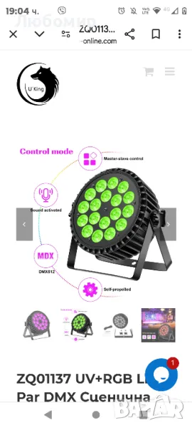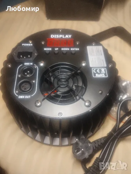 Режим на управление: автоматичен, звуково активирано управление, стандартен DMX 512, главен-подчинен