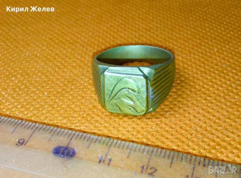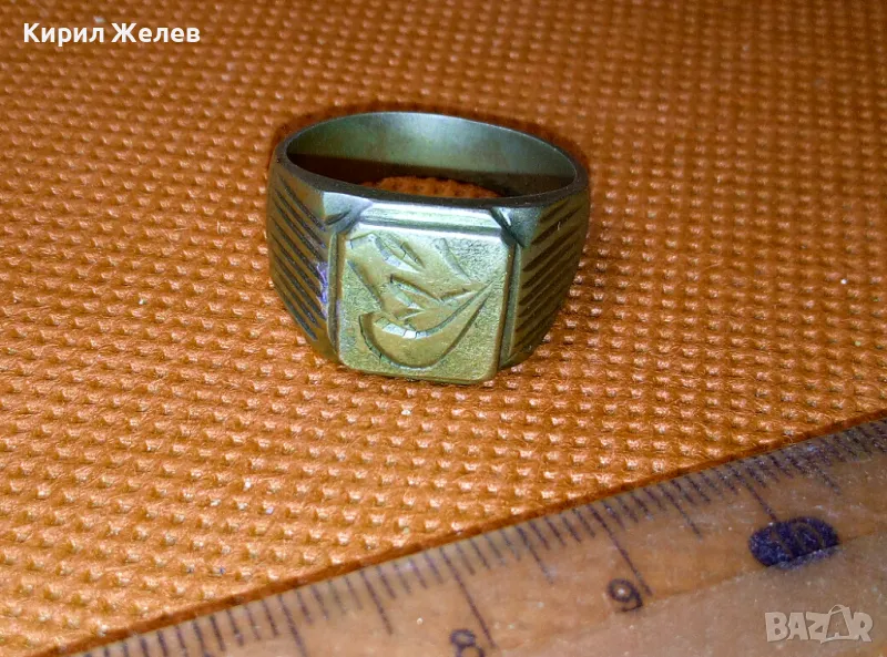Стар МАСИВЕН БРОНЗОВ ПРЪСТЕН с ЕМБЛЕМАТА на NIKE и ПЕЧАТИ 18К 750 За КОЛЕКЦИЯ 47500
