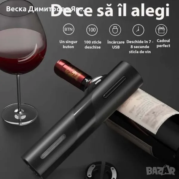 Комплект електрическа отварачка за вино, автоматичен тирбушон, AA батерия → Обява 47162962