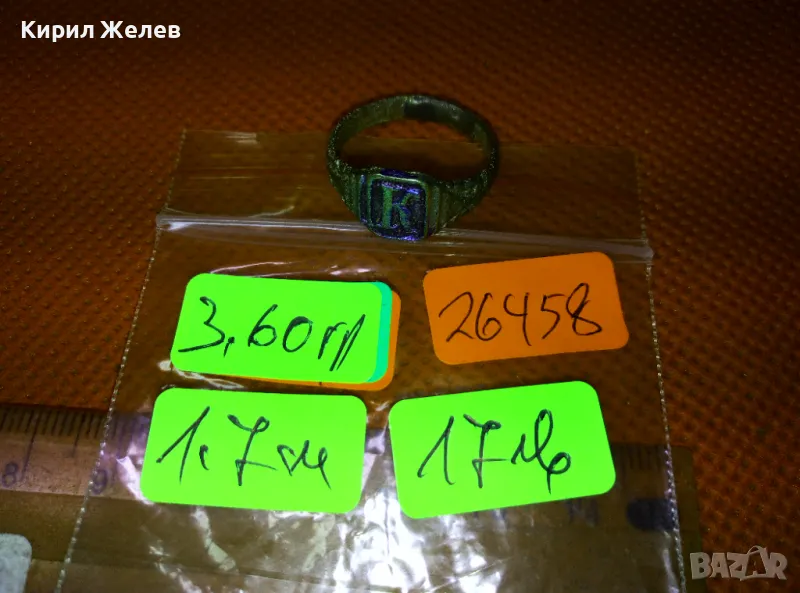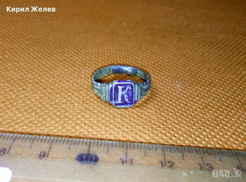СТАРИНЕН САЧАНЕН ПРЪСТЕН с БУКВА МОНОГРАМ - К Ръчна ИЗРАБОТКА САЧАН За КОЛЕКЦИЯ 26458