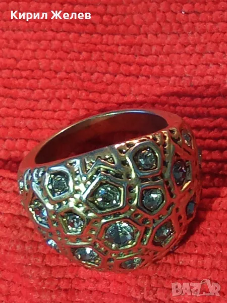 СТАР КРИСТАЛЕН ПОСРЕБРЕН ВИНТИДЖ АРТ СТИЛ ПРЪСТЕН от БЛАГОРОДНА СТОМАНА 39822