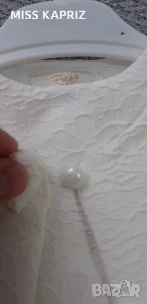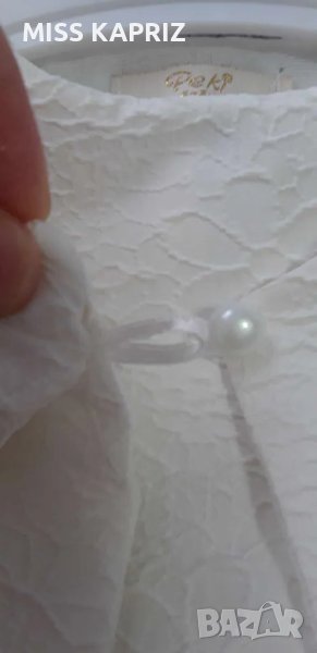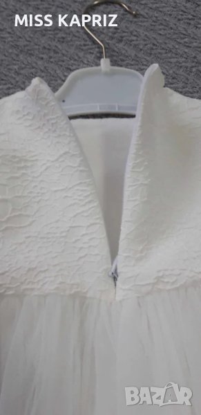 Бяла рокля с къс ръкав и перли на талията, подплата с тюл, закопчаване с цип на гърба