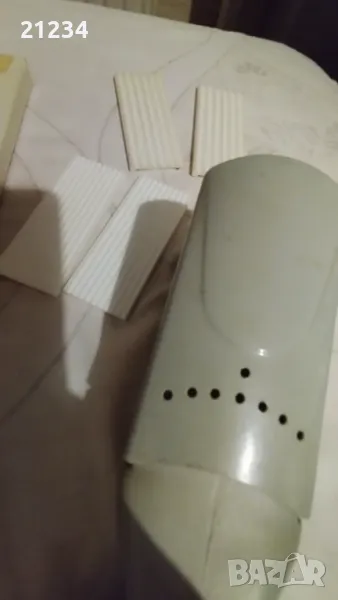 Има 3 вида представки в кутията.Така е купена.Има следи от ползване и пожълтява е на места.Здрава е и работи.