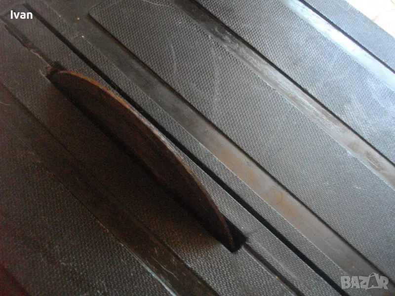 Машината е с оригиналният си пластмасов ограничителен линеал ширина. Разграфен линеал от двете страни по ширина на плота - в инчове и в мм - до 130 и до 200. Плота е от едната страна с ваничка за вода за водно охлаждане на диска.