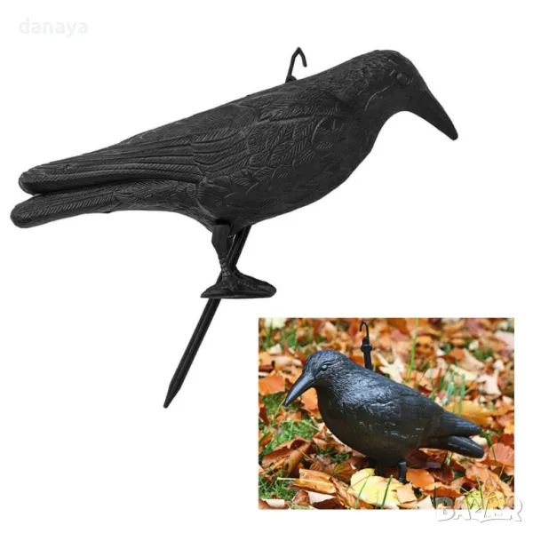 Плашило за птици за двор и градина с облик и реални размери на врана.