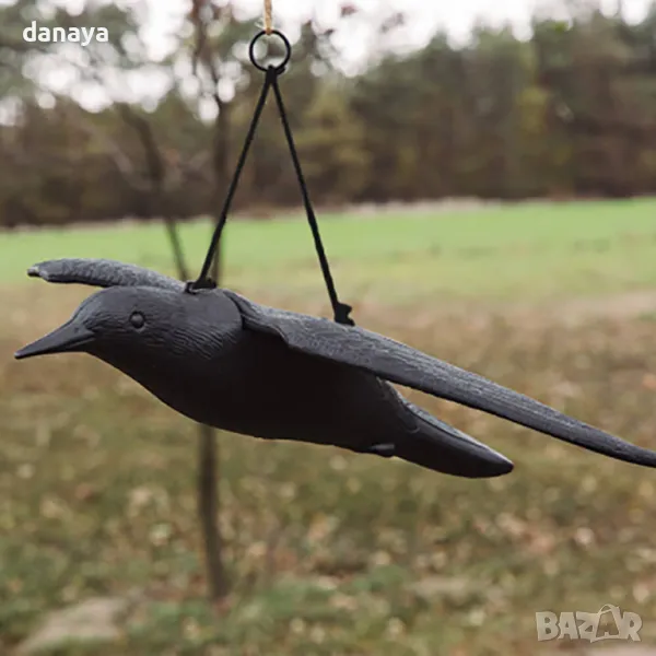 Плашило за птици във формата на врана в естествен размер е ефективен за прогонване на ГЪЛЪБИ, КОСОВЕ, СИНИГЕРИ и други дребни птици.