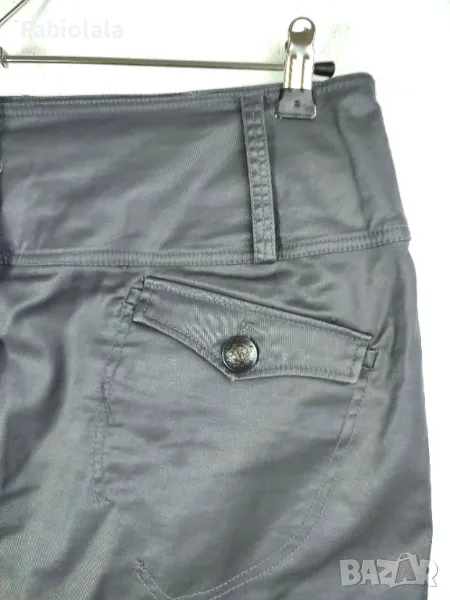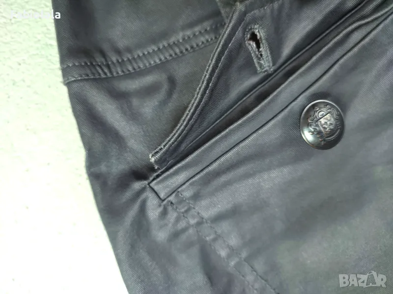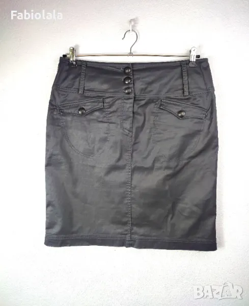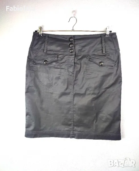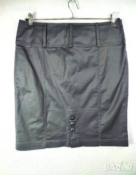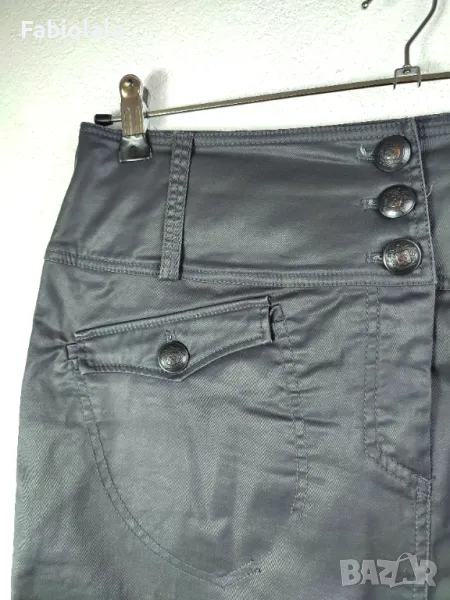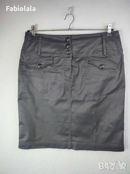 Тъмно сива пола, еластичен памук с лъскаво покритие. 2 джоба, закопчаване с цип + копче