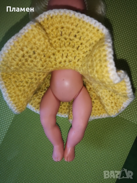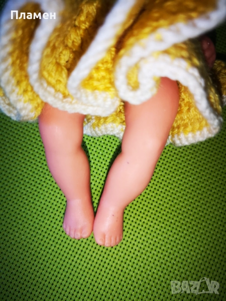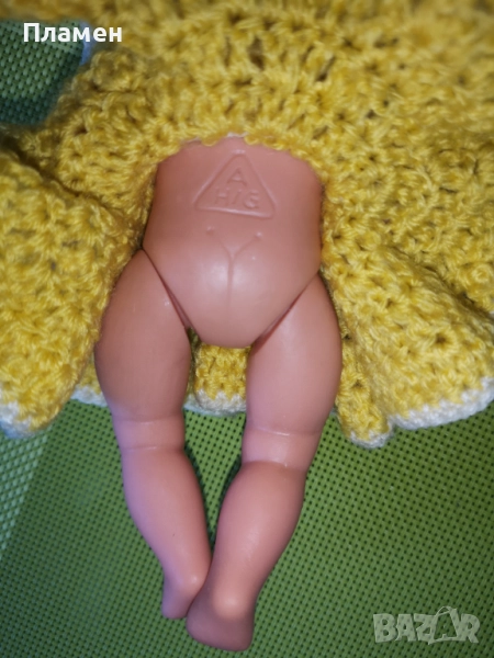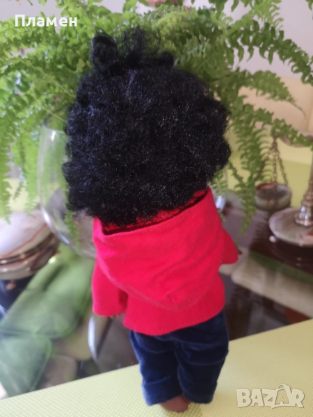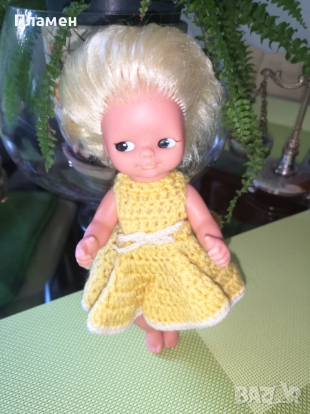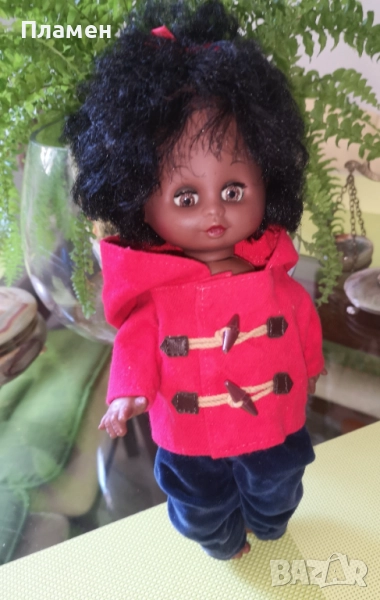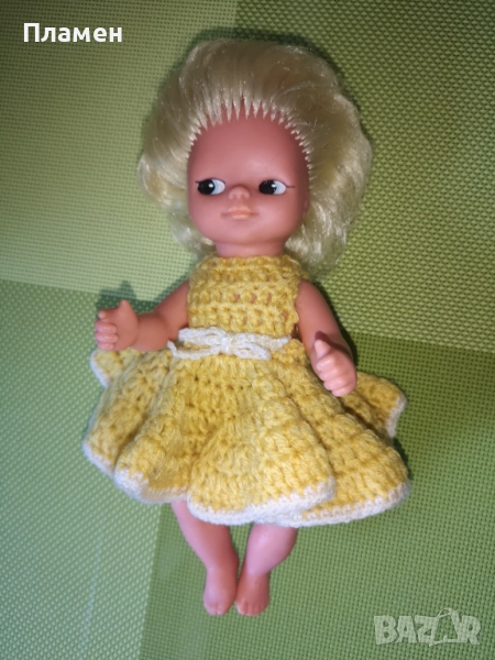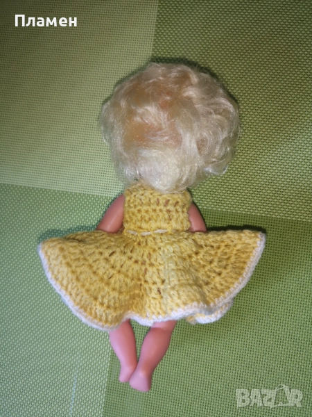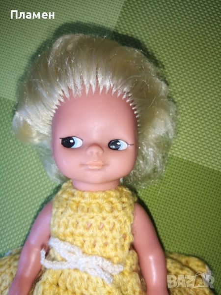 Две едва забележими точици на единия крак - виж последната снимка. Няма други забележки. Куклата е чиста и добре запазена за годините си.