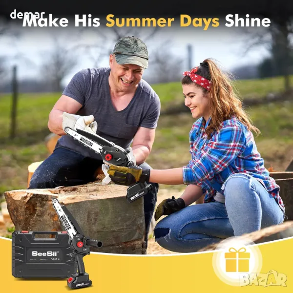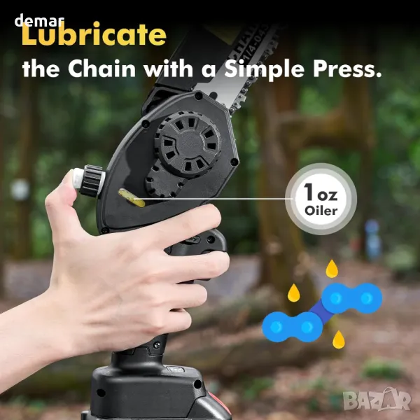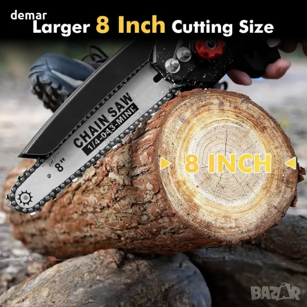 Мини верижен трион Seesii 8 инча, с автоматично масло, 2 бр. 2000mAh батерии