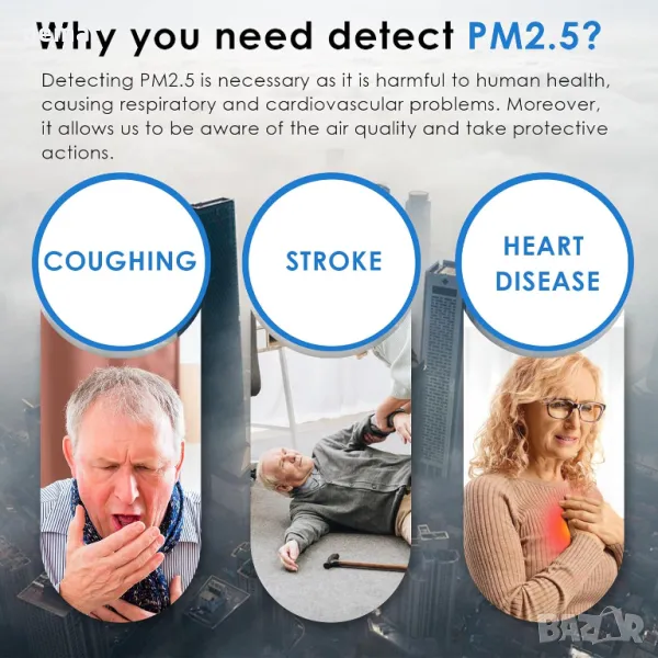 AIMILAR Монитор за качество на въздуха - PM2.5 детектор Домашен тестер за качество на въздуха