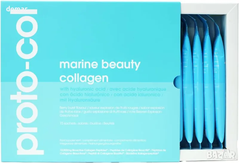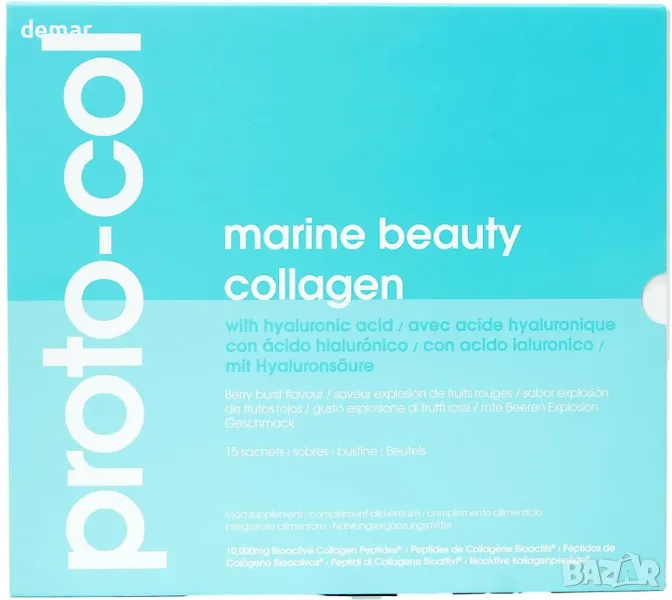 Proto-col Marine Beauty Collagen предлага удобен начин за подобряване на здравето, еластичността и хидратацията на кожата с 15 лесни за използване сашета. Произведен от морски колаген за по-добро усвояване, той поддържа младежки вид, като подобрява текстурата на кожата и намалява признаците на стареене. Преносимите сашета могат да се смесват с вода, сок или всякаква напитка, което улеснява включването им в ежедневието ви за сияен блясък.