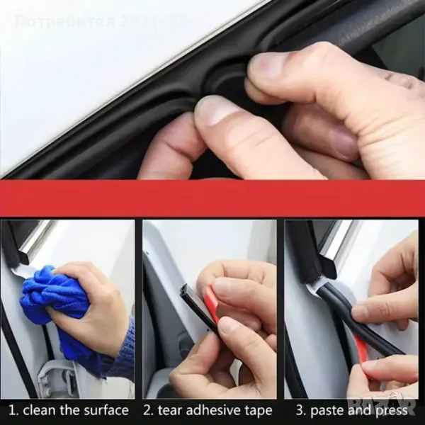 Има лепенка от долната страна, с която за залепва. Мястото трябва да е идеално изчистено и да се лепи върху ламарината. Лепене върху старото гумено уплътнение е възможно да не се получи.