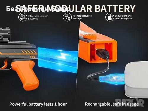 Литиева батерия: Модулната батерия се зарежда бързо и осигурява поне 1 час игра.