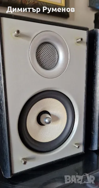 усилватели на пазара. Покритие от бук, лесно ще намери своето място във вашия интериор, закрепено към стената или поставено на стойка или рафт. (Централен конус на средночестотния драйвер Централният конус има анти-вихров ефект: той елиминира ефектите на кухината на дъното на конуса и свръхналягането, генерирано от традиционните капаци на сърцевината. Динамичната работа на високоговорителите е оптимална с по-добра реакция импулсът е подобрен и честотната характеристика е много по-линейна в целия регистър, включително извън осевия говорител : 25 mm Ширина на честотната лента: 80 - 20 000 Hz Ефективност: 86 dB Импеданс: 4 - 8 ома Размери (Д x В x Д): 200 x 135 x 197 mm - Тегло: 2,1 kg Възможност за окачване на стена Клемен блок с щипки проектиран и разработен в Дания добро представяне, работи перфектно, добра линейност, решетки и кутии в добро състояние.