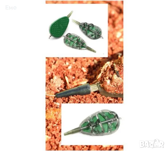 С възможността да избирате между три различни тегла, ще бъдете подготвени за риболов както в реки с бързо течение, така и в спокойни водоеми. Просто изберете подходящата хранилка, заредете я със захранка, и я поставете в желаната точка на водоема. Хранилките са лесни за използване и гарантират, че захранката ще бъде доставена точно там, където е най-необходима, привличайки рибите към вашата примамка.Материал: Висококачествена пластмаса и метал; Тегло на хранилките: 30g, 40g, 50g; Цвят: Тъмнозелен или черен, за по-добро сливане с дъното на водоема; Тип хранилка: Фидер хранилки, предназначени за риболов на дъно; Употреба: Подходящи за риболов на шаран, платика,